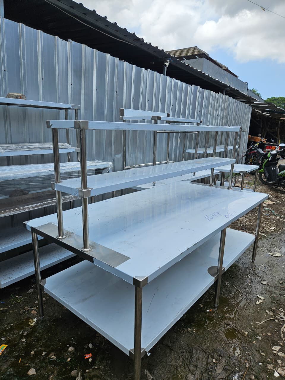Meja, kursi, rak, tempat makanan, dan berbagai furniture stainless steel custom sesuai kebutuhan desain interior Anda.