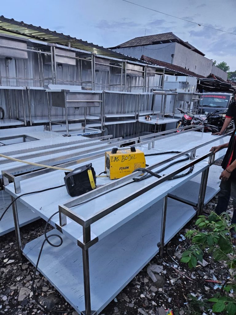 Desain dan fabrikasi food truck serta booth pameran stainless steel premium siap pakai untuk bisnis kuliner Anda.